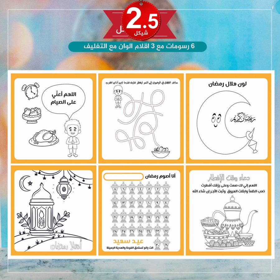 يحتوي على ورقة a4 فيها 6 رسومات مع 3 اقلام الوان مع التغليف