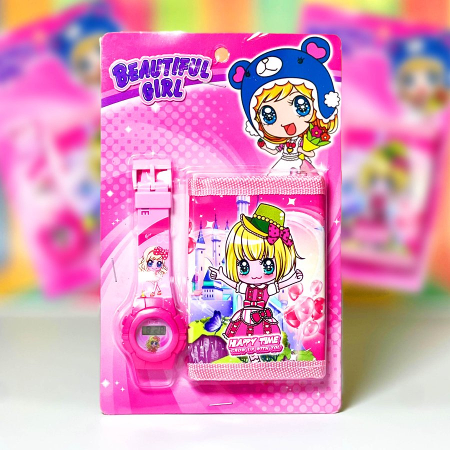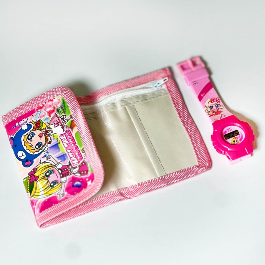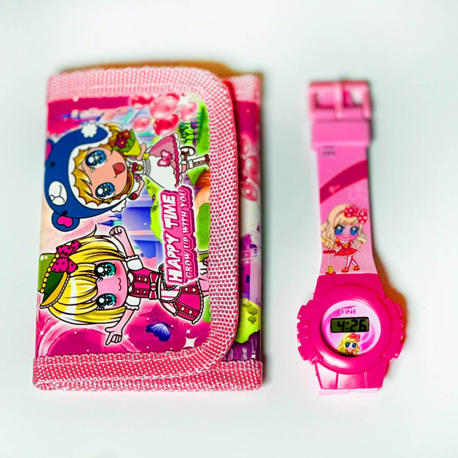 هدية جميلة للاطفال تشمل ساعة وجزدان بناتي