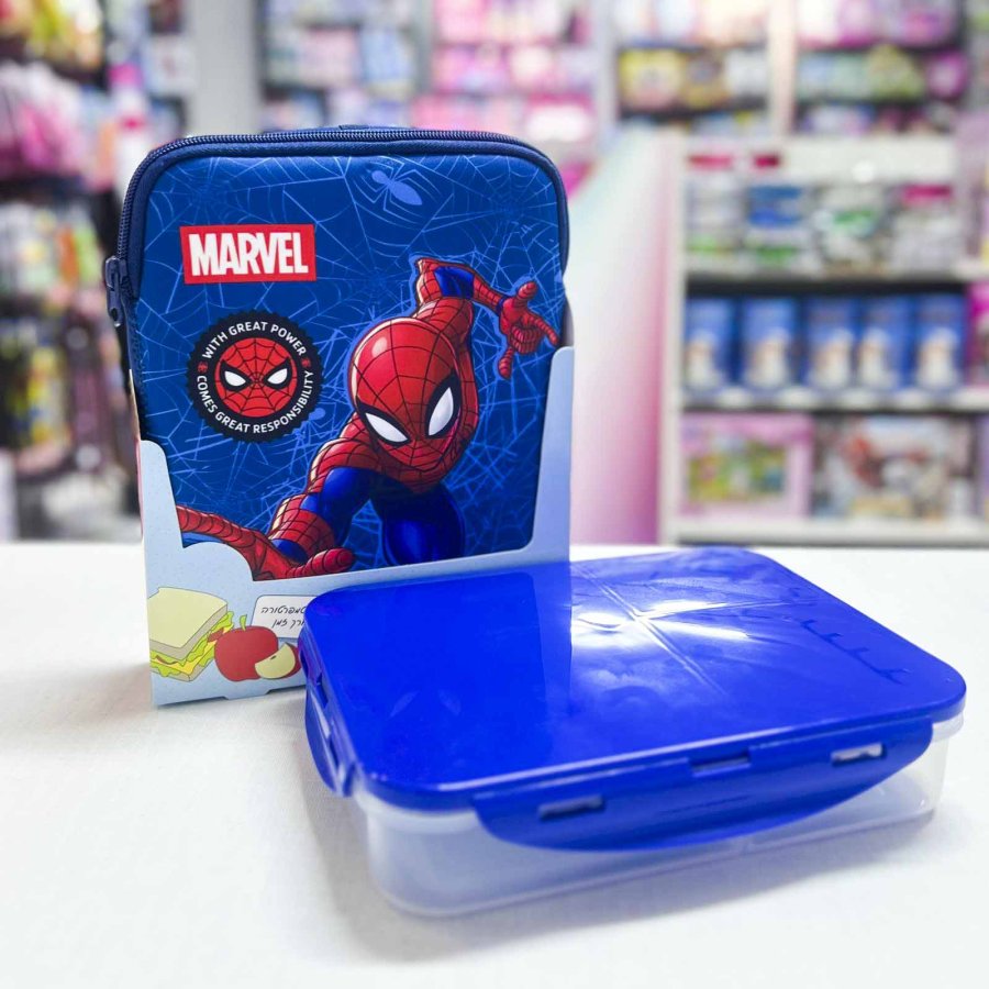 علبة طعام مع شنطة قماش سبايدرمان
