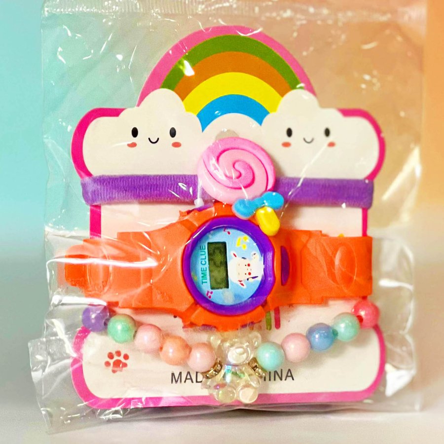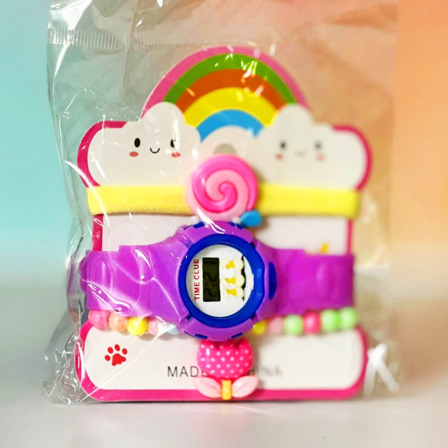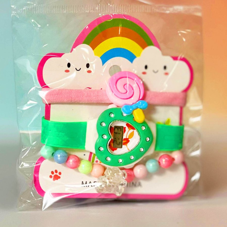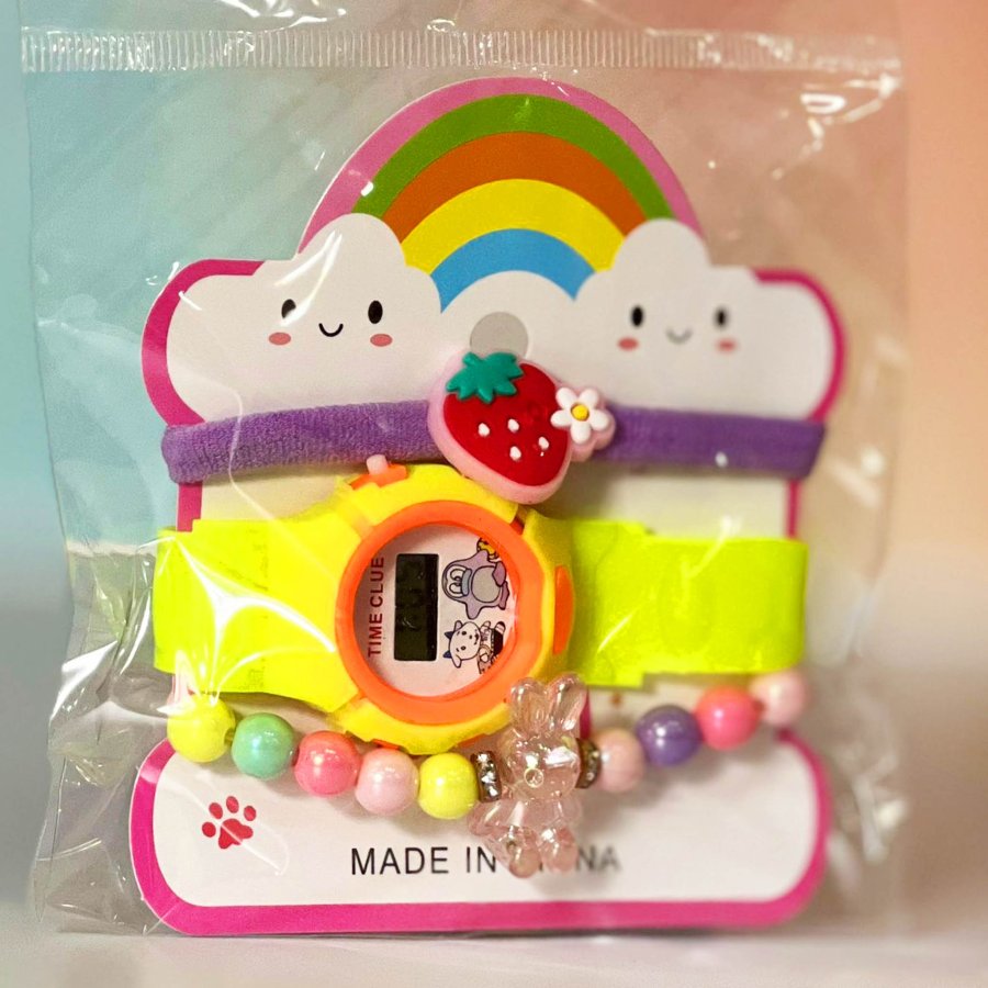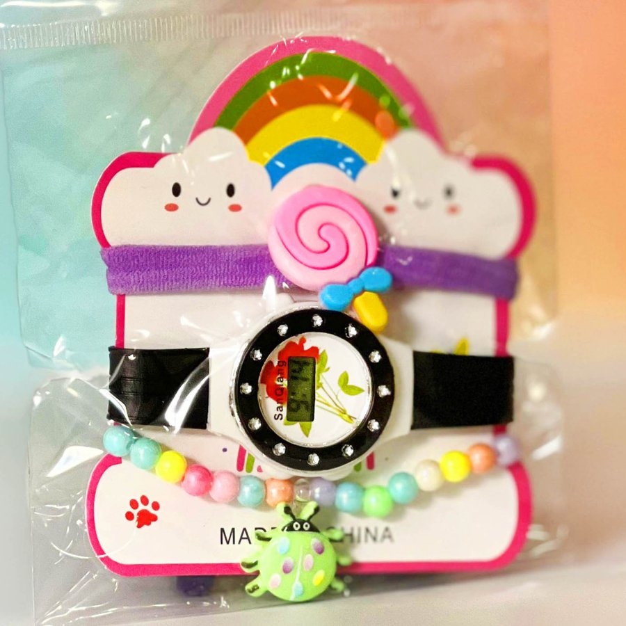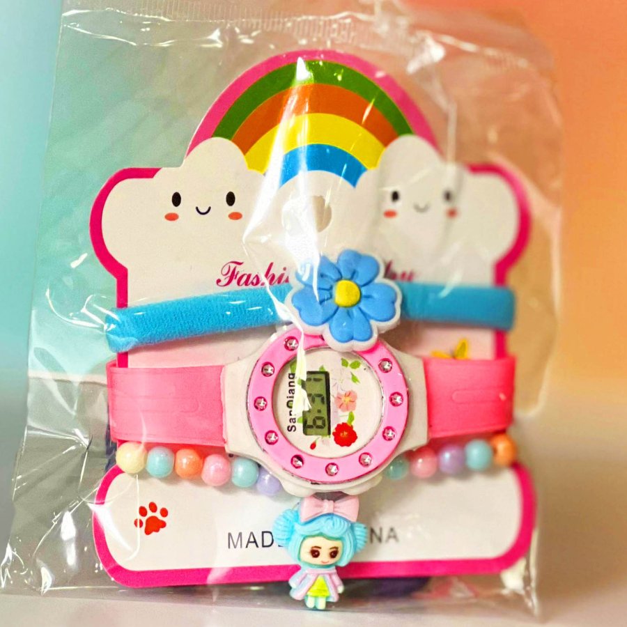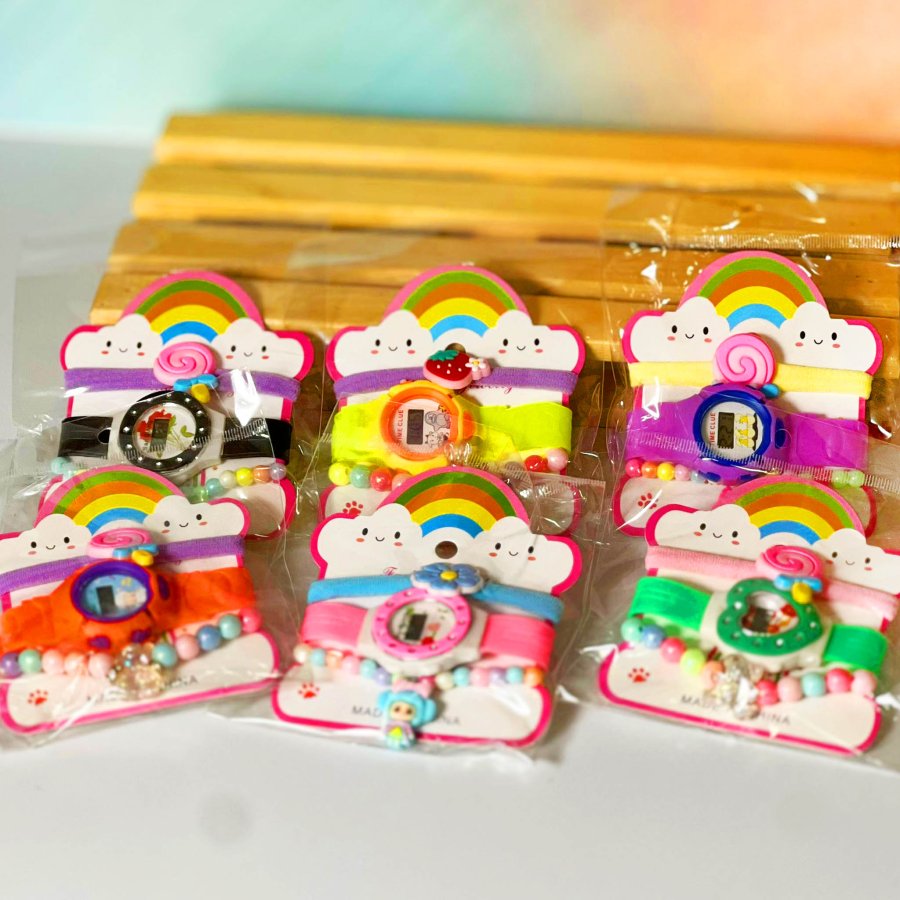 كرت ساعة بناتي مع اساور ( شكل غيمة )