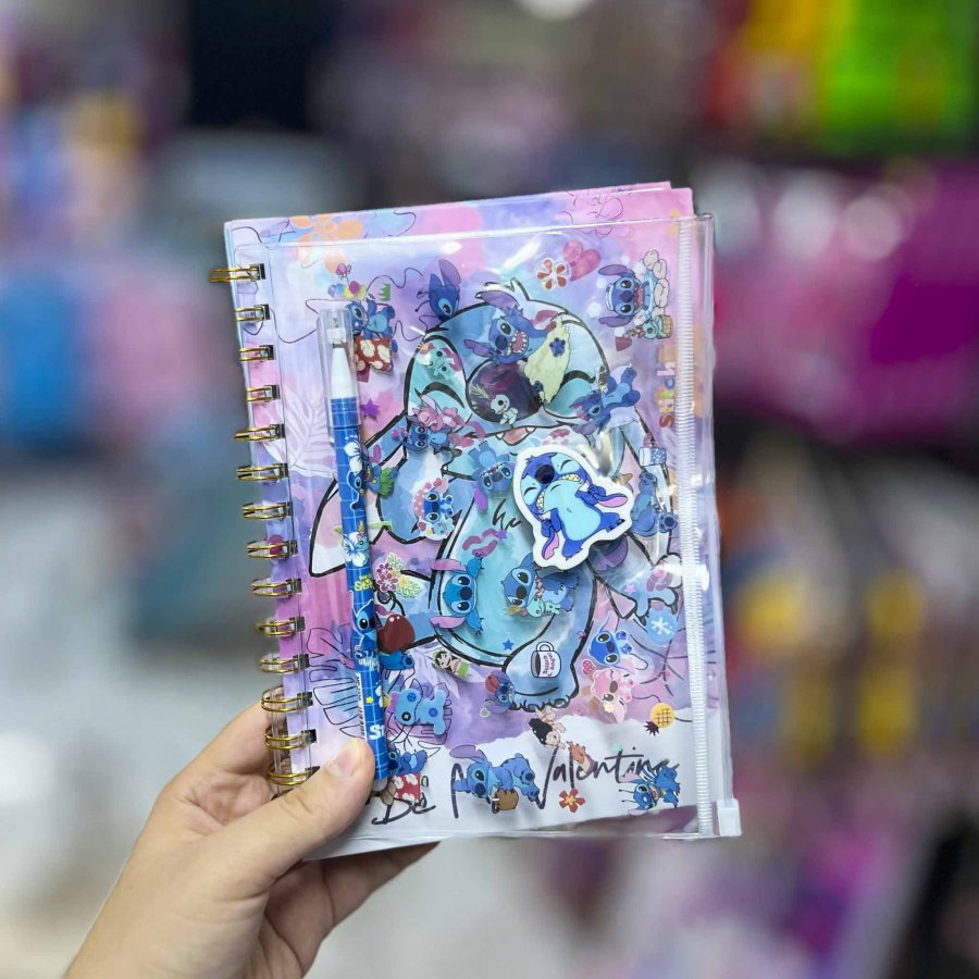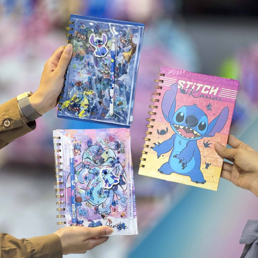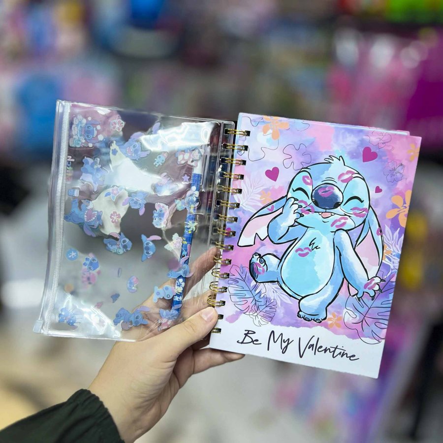 دفتر ستيتش مع قلم ومحاي وستيكرز