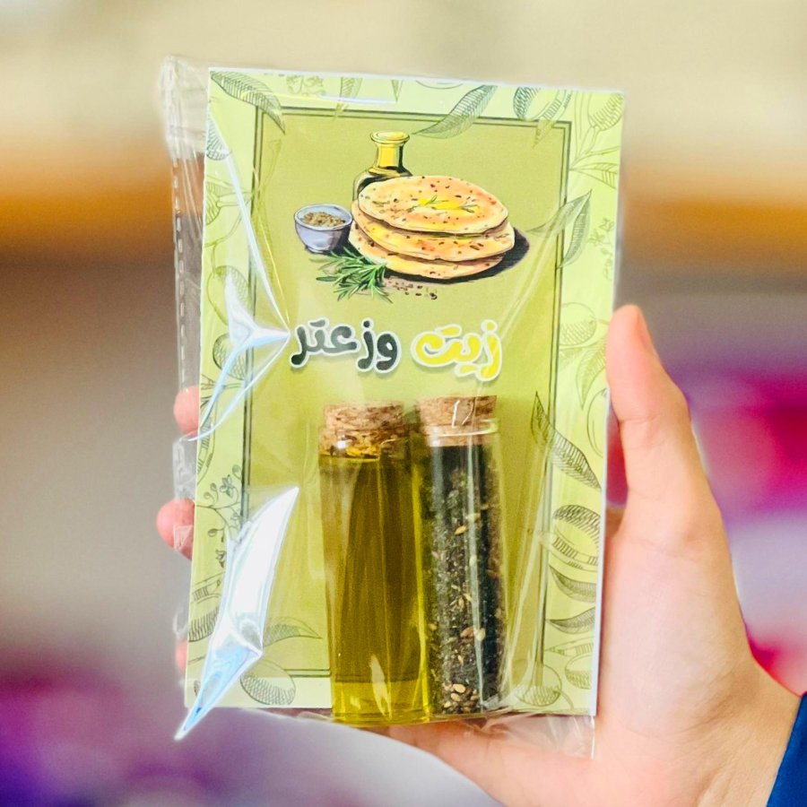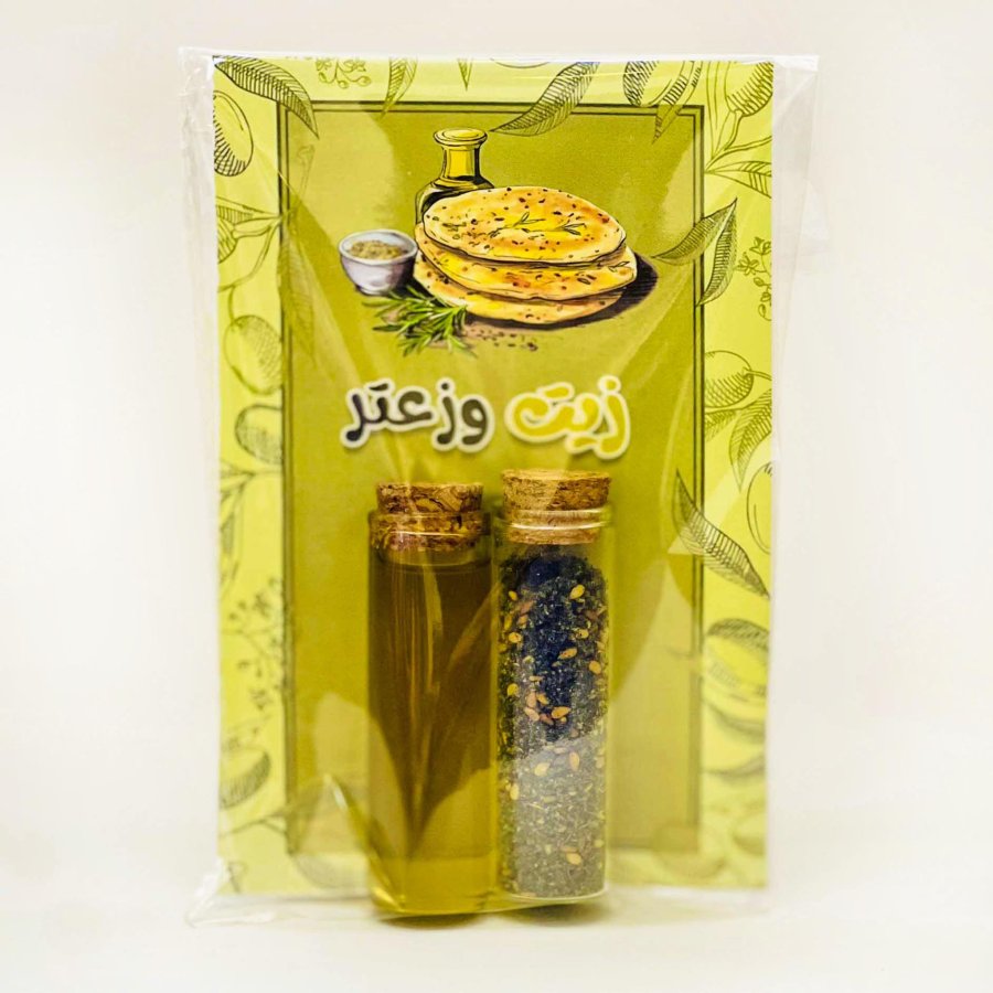 ملاحظة : فارغ من الزيت والزعتر ( يحتوي على 2 قارورة زجاج و بطاقة 10 ب 15 سم مع تغلف