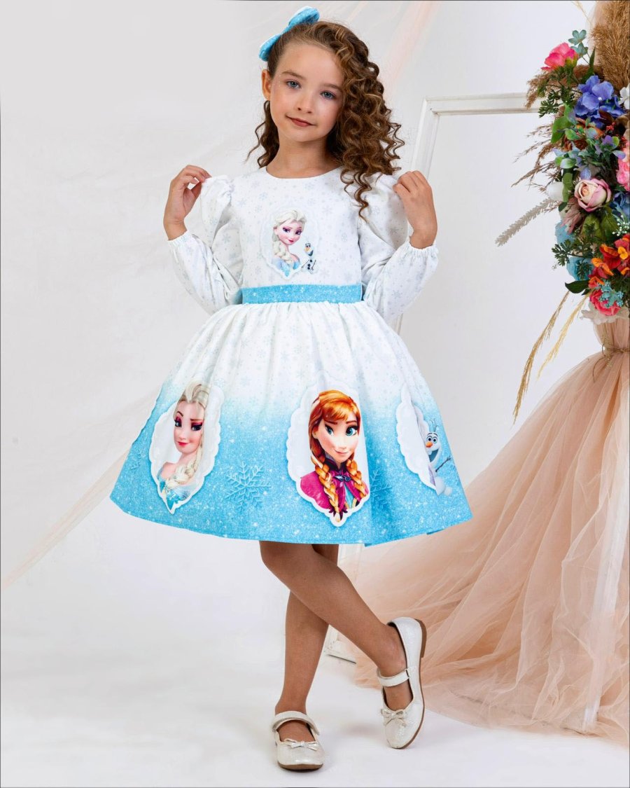 فستان ديزني فروزن ازرق وابيض