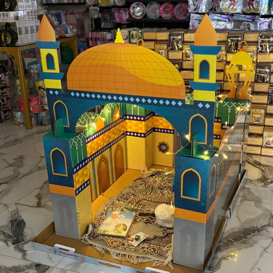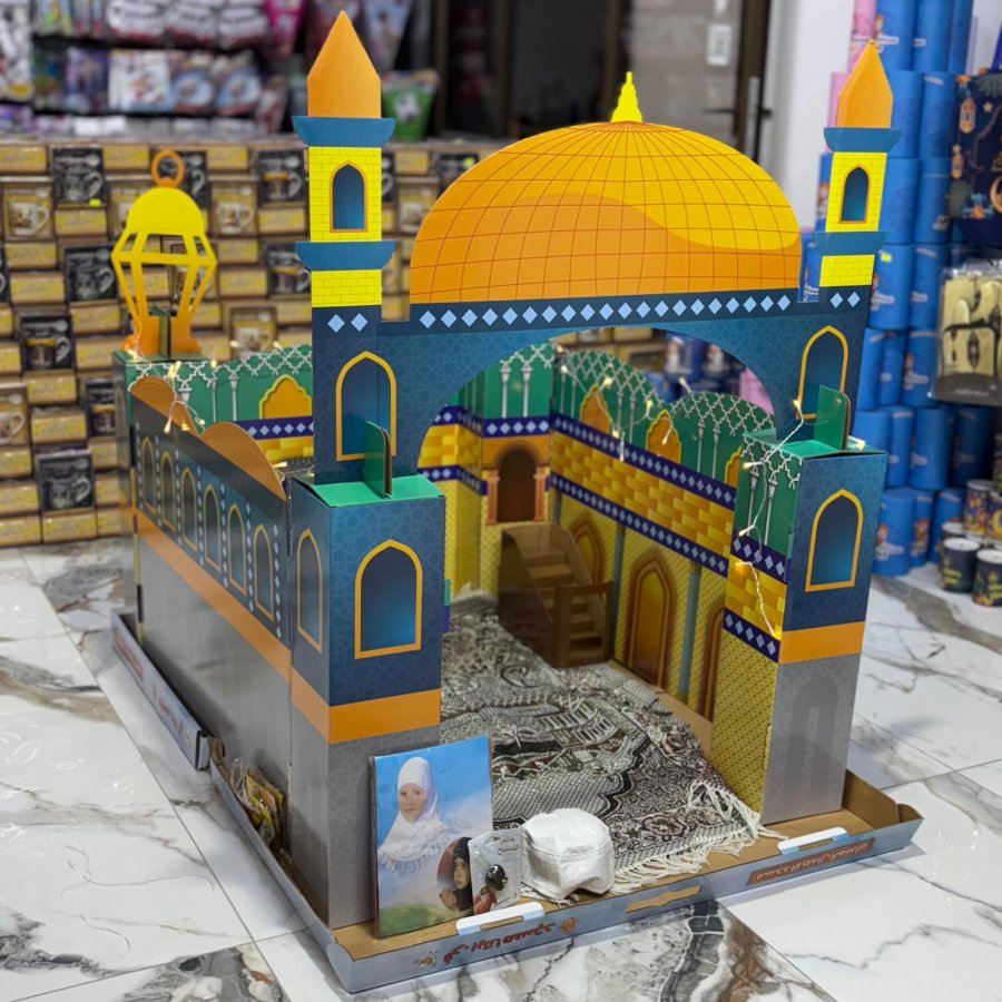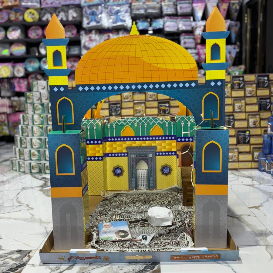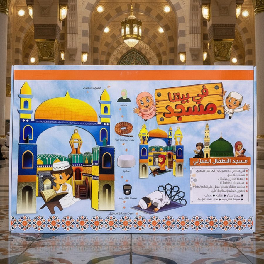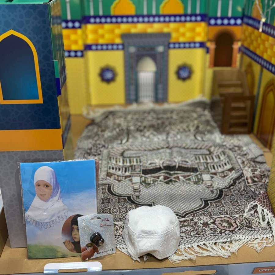 يحتوي سجادة ومسبحة الالكترونية وطاقية وحبل اضاءة وحجاب ومسجد للاطفال