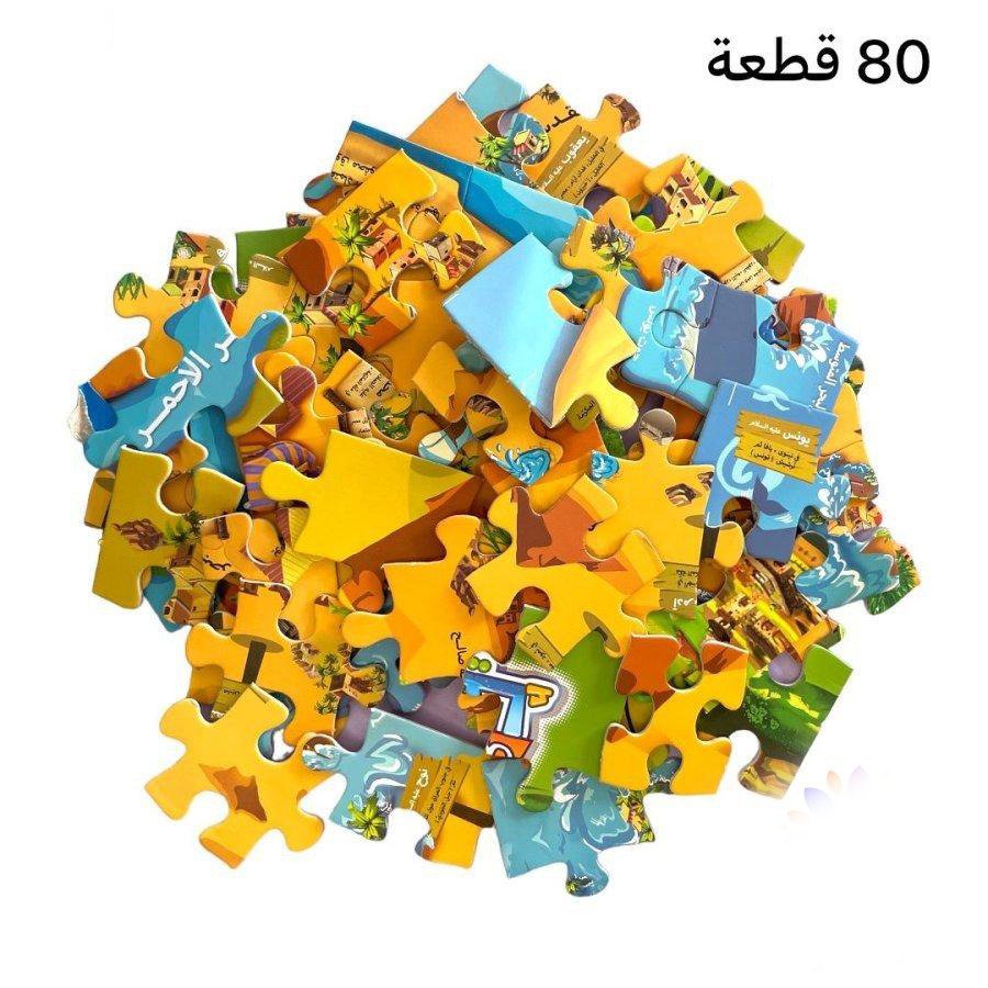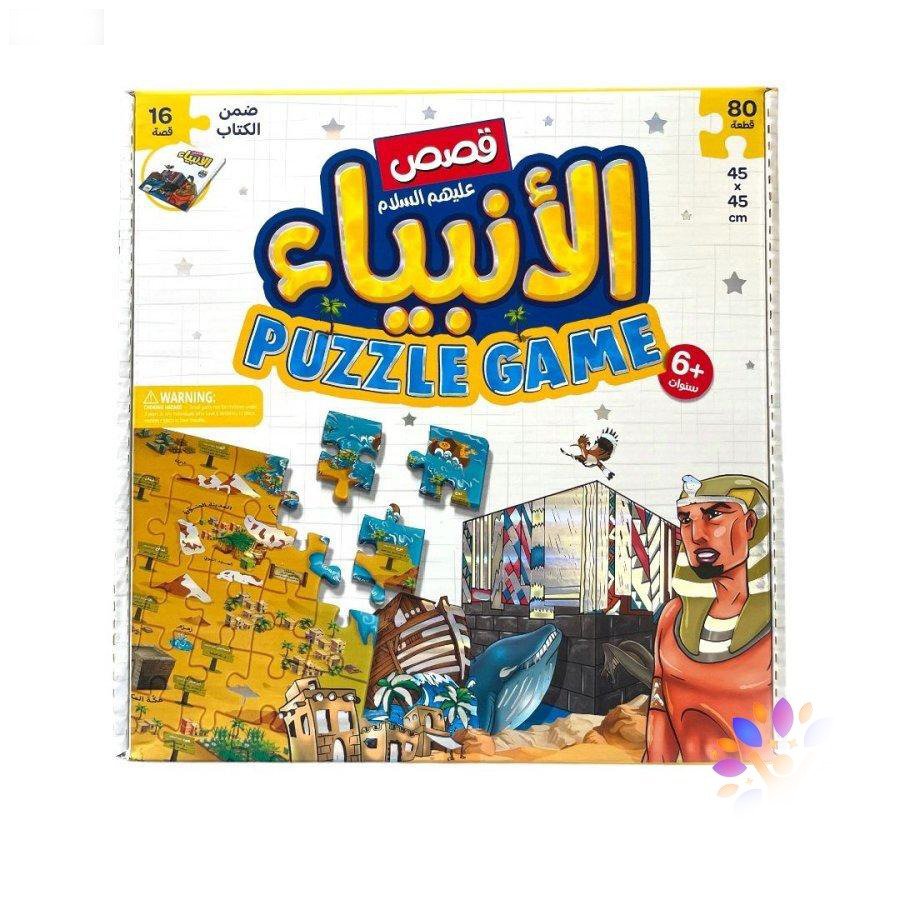 PUZZLE GAME قصص الانبياء محتويات العلبة :- 80 قطعة بازل تشكل لوحة قياسها 45*45 سم كتاب يحتوي على 16 قصة من قصص الانبياء الوصف : هيا بنا نتعلم قصص الانبياء عن طريق اللعب والاستمتاع بتركيب بازل خريطة قصص الانبياء . عندما تكتمل اللوحة ستجد قصة كل نبي من انبياء الله حسب مكان نزوله واهم معجزة لهذا النبي .. بالاضافة الى قصة ممتعة ستقرأها لتقص عليك حياته باسلوب سهل وممتع