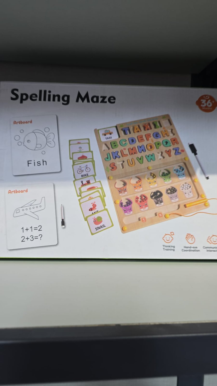 حيث يقوم الطفل بتحريك الحروف عبر المتاهة لتهجئة الكلمات.