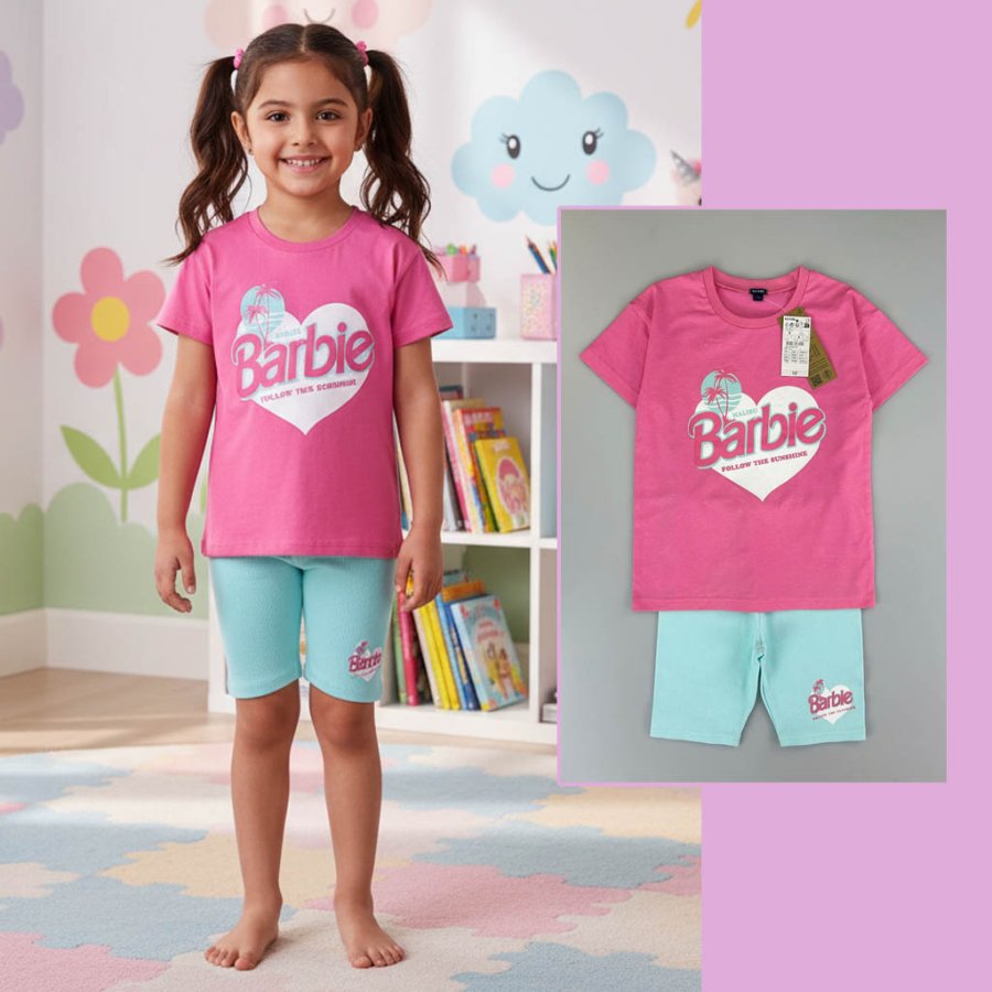 بجامة باربي زهري وازرق