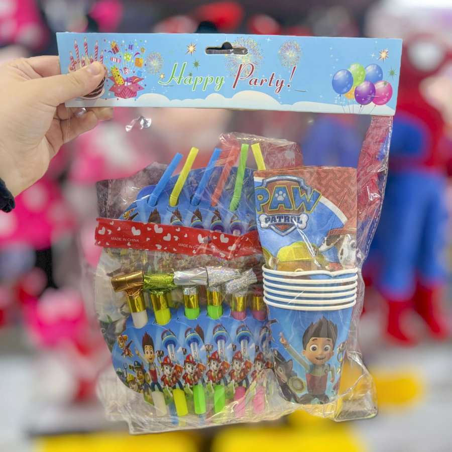 يحتوي على صحون وكاسات وشلمونات ومحارم وزميرات عدد 6 من كل نوع
